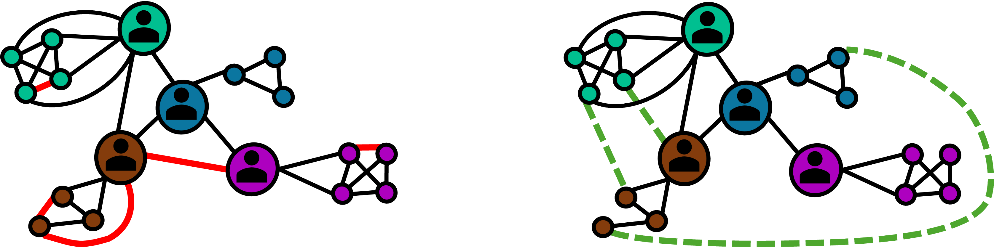What it does. Add weak connections to reduce polarization and connect minorities. Uses effective resistance to quantify group isolation, diameter, and control disparities across communities, and introduces ERG, an edge-augmentation strategy that adds weak ties to reduce polarization and equalize information access.